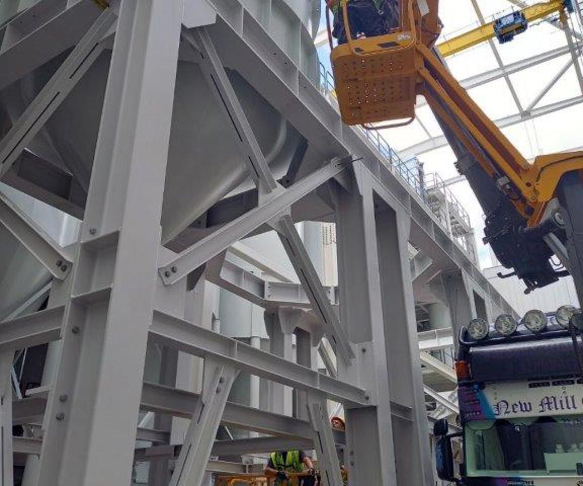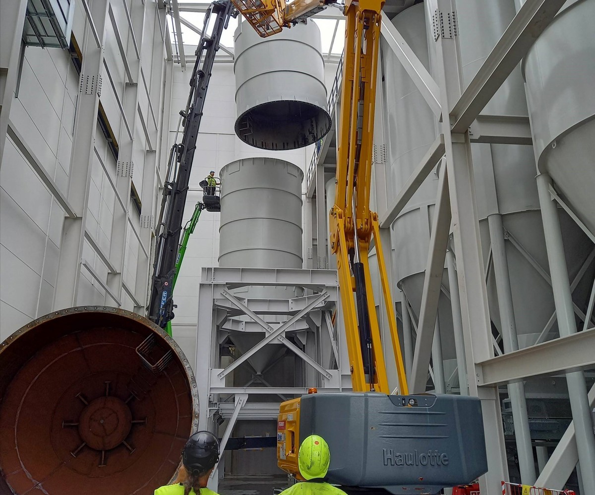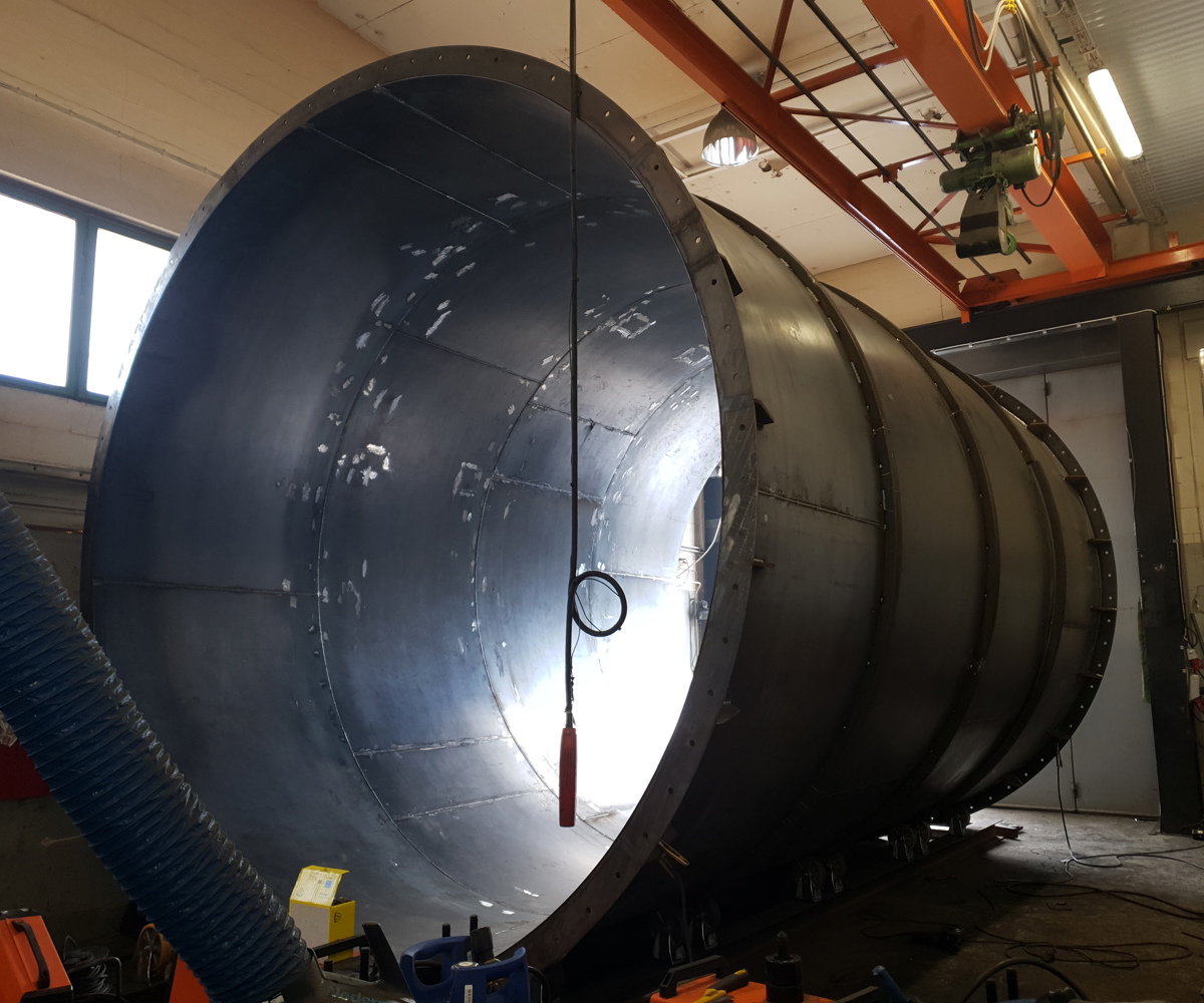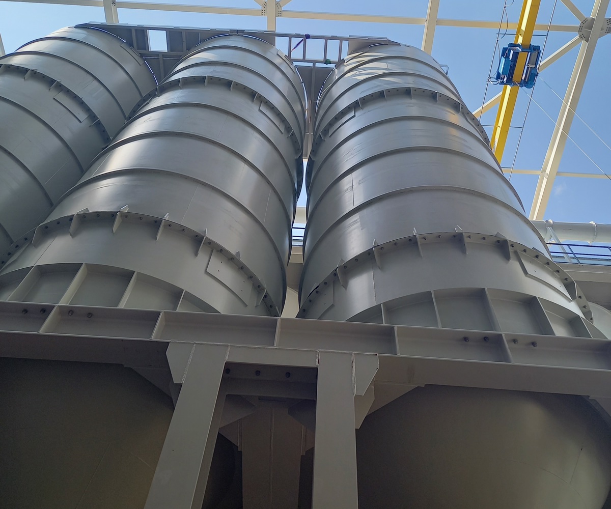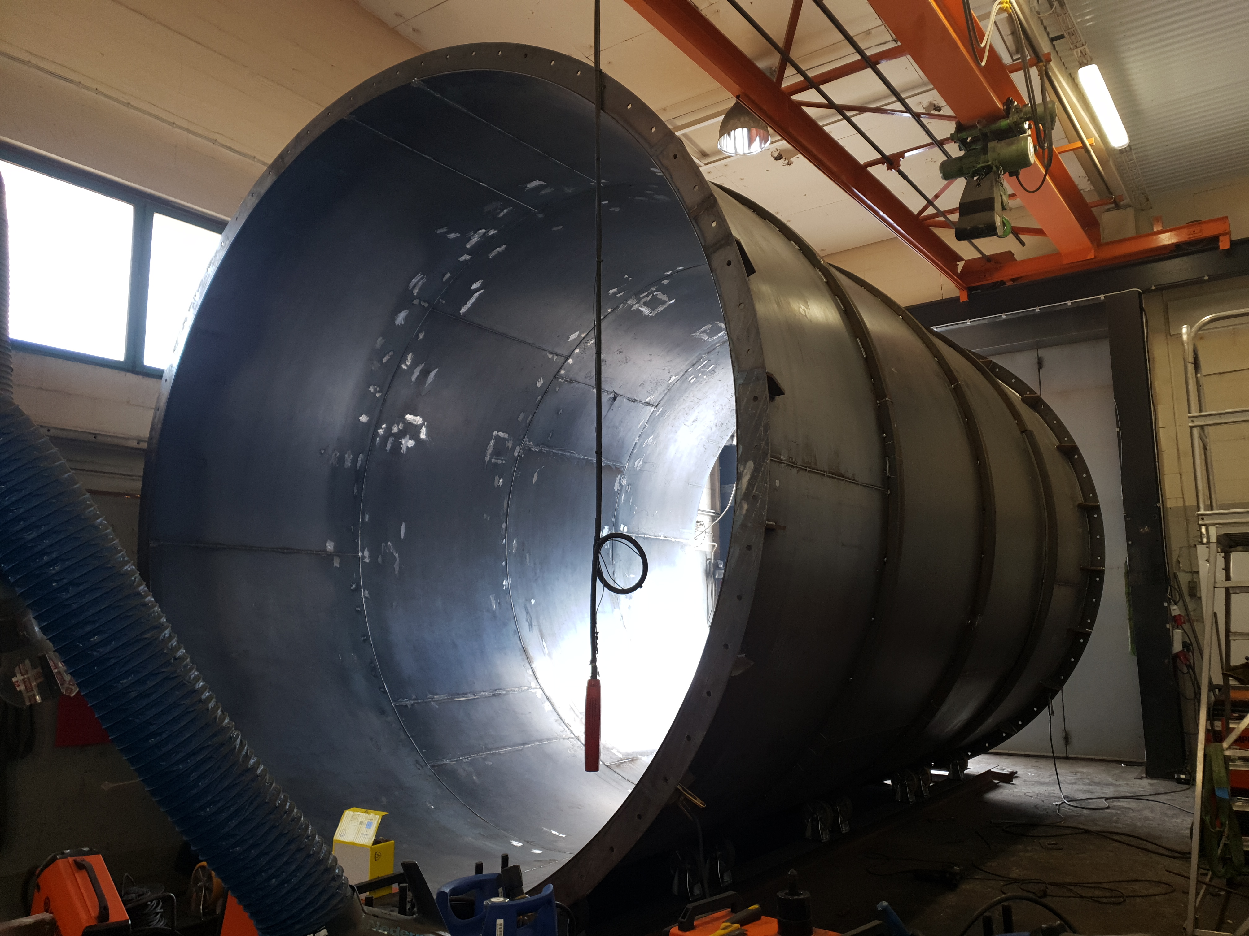 Silon är gjord för att lagra sand och är över 14 meter hög. Den tillverkades från grunden i våra produktionslokaler i Södertälje och monterades tillsammans med rörledningar och maskiner.
